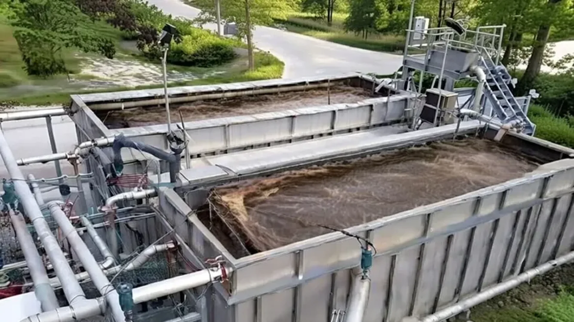 กระบวนการทางชีวภาพ: น้ำเสียจะถูกส่งเข้าถังเติมอากาศ (Aeration Tank) ที่มีจุลินทรีย์ (Activated Sludge) ทำหน้าที่ย่อยสลายสารอินทรีย์ สารอาหารอย่างไนโตรเจนและฟอสฟอรัส โดยจุลินทรีย์จะเติบโตและสร้างตะกอน (Sludge)
